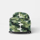 This custom backpack is shown in a green multi colour camo print, buy as shown or add to it.