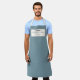 you and your staff will look great baking, cooking, serving, working the register, etc. in this minimal, simple, and contemporary branded apron with space for your business name, employees name, or anything else you'd like to include. Design features a solid base of a medium tone bluish stone colour with heavy grey undertones, accompanied by a bordered rectangular box to display two lines of custom text in simple contemporary serif lettering. Personalise with your business name, an employee name and title, or anything you'd like. Perfect for any sort of business really. the rolling pin icon can be replaced or omitted all together.