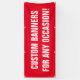 Design your own vinyl banner flag or sign for printing. Make your own custom pvc indoor or outdoor banners. Add your own printed text and background colour. Sign template with personalizable modern typography. Great for Birthday party, wedding celebrations, graduation, retirement, reunion, business, shop / store opening, special holidays, advertising, yard or garage sales, venue, bridal party, anniversary, sports events, tournaments, welcome home message, army, promotional occasions etc. Personalised signage with big letters / large lettering. Available in different sizes and shapes for wall, balcony, garden fence, office building etc. With or without holes to hang it up. Change the quantity for the cheapest price. Digital printing, fast delivery.