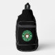 Custom barista sling bag with coffee shop logo. Add name of café, restaurant, pub or bar. Personalised bags for men and women. Round green and brown company logo with cup and coffee beans icon. Cute design for cafe owner, employees, personnel, staff, co workers, boss, dad, mum uncle, grandpa, friend, bartender etc. Business emblem symbol for coffee drinkers and caffeine addicts.