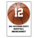 Basketball event table number card done in white, with a big brown basketball, in the middle, with bold white table number, in the middle of the ball. Black text at the bottom is ready to personalise to read what you want. Personalise the number and text, one for each table at your event. The background colour can easily be changed to any colour you want in customise mode.