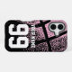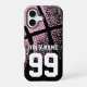 Custom basketball jersey number budget friendly iPhone 16 Case. Rough durable design with vintage pink ball print. Great gift for fans and players. Background colour can be changed. Zazzle brand phone cover.