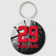 Personalized red jersey number basketball keychain with name. Sporty present for men / guys, women / ladies and children. Personalizable with funny quote, slogan, monogram, name or high school team name. Cool sports gift idea for basketball players, teammates and fans. Cute give away for senior students, teenagers or youth coach with little league boys and girls. Black and white ball photo with double digits. Create your own design for him and her. Make one for dad, mom, husband, boyfriend, brother, sister, wife, kids, coaches, employees etc.