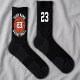 Make your own personalised high-performance athletic crew socks for basketball players and teams! Click to personalise the template and type your own basketball team name, basketball player jersey number and basketball player position in the custom text boxes. The colour of the sock itself (currently set on black) can be customised as well. Makes a great team gift for basketball teams at all levels, especially high school and college basketball teams! The high-performance athletic socks can we worn to basketball practices or games.