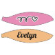 Cute heart cartoon design with custom name, logo, age or jersey number and background colours.