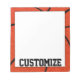 The Custom Basketball Team Name Notepad for Coaches: A cool, customisable basketball notepad with a high-definition leather basketball border around the sides, a white rectangle for jotting down notes, and a custom text box where you can type in your team name, player or coach name, school name, slogan, mascot or anything else! Would look great in the basketball coach's office!