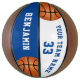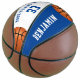 Custom Basketball with Player Name Team Number. Personalize it with team name, player number and name. The design has two basketballs images on the left and the right side on blue and white background. A great keepsake and a gift to remember the favorite sport.