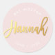 CUSTOM Bat Mitzvah blush pink gold name HANNAH Classic Round Sticker