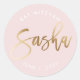 CUSTOM Bat Mitzvah blush pink gold name SASHA Classic Round Sticker