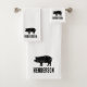 Custom bath towel set with vintage pig silhouette. Custom set including wash cloth and towels. Made in USA. White or custom colour. Personalise with family name or monogram initials.