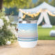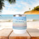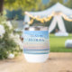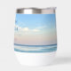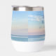 This picturesque beach photography wine tumbler gift from Destin Florida features the gorgeous pink and orange sunset gently touching the ocean waves above the sand and sea grass. Lovely seaside keepsake souvenir for a vacation or destination wedding with personalised trip date and family last name for your favourite vacation spot.