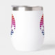 Cute custom beach wine tumbler for a destination wedding favour or family island home near the ocean. Cool personalised favour or gift featuring tropical palm tree and pretty pink and blue and your name underneath the coastal horizon.