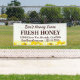 A custom 6' small-business honey sign with large text on top for your business name and product, and smaller text on the bottom for your address or other info, and vintage art of honey bees on a honeycomb. Customise it to change fonts, background colours, upload your logo, even save your design for later.