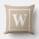 Custom Beige Square Monogram Initial Throw Pillow