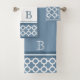 Custom Bermuda Grey Blue White Ikat Quatrefoil Art Bath Towel Set