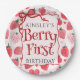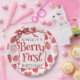 Custom Berry First Coquette Pink Bow 1st Birthday Paper Plate