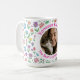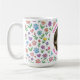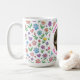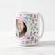 Celebrate the special bond between a cat and their human with this adorable, fully customizable photo mug. Featuring a whimsical wrap-around pattern of pastel flowers, hearts, and colorful paw prints, this mug is the perfect way to show off a favorite feline friend.