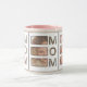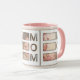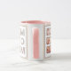 Celebrate the best mom ever with this modern 3 photo grid coffee mug. Featuring a clean and minimalist photo collage layout, this mug is the perfect way to display your favorite family memories in a trendy pink and white aesthetic.