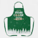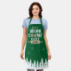 Elegant apron featuring a christmas design with trees, cookies and cook utensils.