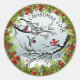 Custom Birds In Snow Pine Needles Red Berries Classic Round Sticker