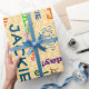 Add a name for super special customised heavy weight gift wrap with fun polka dot background. Change the Happy Birthday text to say Congratulations or other text if you prefer.