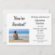 Make any birthday a fun occasion with this fun and flirty birthday photo invitation. Personalise it and send it out for your big celebration. The words "You're Invited" as well as the party details are in black typography. You can change the photo out with your own photo if you'd like. The text is fully customisable and the colours can be changed through the edit menu. The back of the invitation has a beautiful grey geometric pattern with circles.