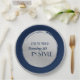 Custom Birthday Party Plates, Modern Blue Silver Paper Plate