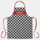 Fun classic apron with seasonal black and white coloured Buffalo Lumberjack style plaid tartan pattern. With room to customise or personalise with a name, or (limited) words or short text of your choice on a red across the chest banner. Cute Christmas gift for that mum, dad, daughter or son - or those grandmothers or grandfathers who like cooking and baking, or just food lovers in general.