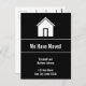 A white house is at the top of this black postcard. The centre has white text for you to personalise. (Display text: We Have Moved) At the bottom, there's white text for your name(s) and new address.