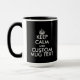 Custom Keep Calm and your text 15oz morphing mugs. Make your own funny Keep Calm and Carry On parody coffee cup. Vintage Keepcalm typography design with crown and morph handle. Cute customisable party favour or thank you gift idea for men women and kids. Personalised drinkware for home or office. Create one for mum, dad, father, mother, friends, family, sister, brother, employee, coworker, boss, coach, teacher, nurse, bride and groom, newly weds couple, husband, wife etc. Fun black and white design for any occasion like Birthday party, Christmas, Retirement, Reunion, Wedding, Graduation etc. Also available in big oversized morphed mug and large travel to go mugs. Add your own humourous quote or saying.