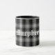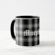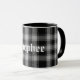 Great looking Scottish clan mug done in the traditional black and white Macphee plaid pattern.  Old world style text in white reads Macphee and is customisable to read what you want.