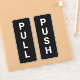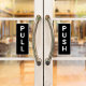 Make it clear which way the door opens with this sleek black and white push/pull door sticker. Perfect for shops, offices, restaurants, or any business, this durable vinyl decal is easy to apply and remove. Add your own text or logo to match your brand and keep your entryways professional and stylish.