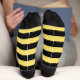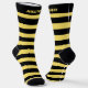 Fun personalised crew socks with a custom name. Simple horizontal stripes in black and bright yellow. The design includes a custom name printed in a bold yellow print on top of the socks.