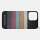Classy, fun, and contemporary ivory grey, mustard ochre yellow, turquoise teal green, vintage rose red, and dark slate blue coloured retro chic horizontal stripes pattern design on a faux leather texture background. With room to customise or personalise with a name, monogram, or initials of your choice. Stylish original and cool cover for the trend-savvy and art-loving hip trendsetter, trendy look style motif lover who wants to protect their phone from dust and dirt, wear and tear. This design is available on a variety of decorative, fashionable, artistic, trending, unique modern, and cool Apple iPhone 6, 7 and 8, 10 or X, XR, XS, 11, 12, 13 Mini, 14, 15 Plus, and Pro Max cellphone cases. Show off your style, look fashionable trendy, and feel stylish with a unique design on a mobile device accessory of your choice.