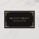 Custom Art Deco wedding planner business cards with golden frame and customisable text, printed on black background