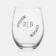 Custom Black Calligraphy Couple Names Initials Stemless Wine Glass