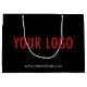 Sometimes you only need a few custom printed gift bags, especially if you're a small business, so here is a great way to just get what you need in the colour and design you want. Easily personalise this large black gift bag with your own company logo and website address. You can easily change the black background to another custom colour. Available in matte or glossy finish. The dimensions are 12.5 inch x 4 inch x 9 inch. No minimum order quantity and no setup fee.