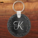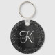 Easily personalize this trendy elegant keychain design featuring pretty black sparkling glitter on a black brushed metallic background.