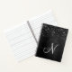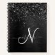 Easily personalise this trendy elegant notebook design featuring pretty black sparkling glitter on a black brushed metallic background.