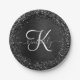 Custom Black Glitter Sparkle Monogram Paper Plate