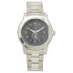 Easily personalise this trendy elegant watch design featuring pretty black sparkling glitter on a black brushed metallic background.