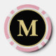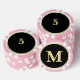 Create your own custom, personalised, 5 denomination, modern faux gold monogram on black background, monogrammed light pink poker chips, in 9 vibrant colours, and featuring textured surface for easy stacking. Simply type in your initials / monogram, to customise. You may even change the denomination from 5 to one of your own choice. While you add/design, you'll be able to see a preview of your creation, throughout. One-of-a-kind chips, great as wedding favours, drink tickets, golf marker, charming keepsakes for weddings, tokens for drinks at events, favours for birthdays, bachelorette parties and corporate events, bachelor party gifts, hosting a poker night, and for home - local - club poker tournaments. Or to just add an element of style to the table. Make a great gift for birthday, fathers day, mothers day, christmas, holidays, new years, wedding, marriage anniversary, and more, for your loved ones, mum, dad, husband, wife, bride, groom, grandpa, grandma, golfer friends, poker player, partner, and family.