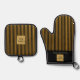 Custom Black & Gold Stripe Oven Mitt & Pot Holder Set