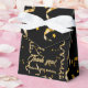 This custom black and gold thank you favour box is decorated with faux gold curly ribbon and confetti stars. It says Thank You in script typography and this can be customised to a different message if you wish. Also, the event name says Melanie's 30th birthday party, but you can personalise it to any event and name. The guests will appreciate this parting gift.