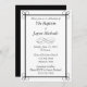 This custom black invitation is the perfect way to invite your friends and family to your child's baptism. This custom invitation features an elegant scroll design and black text. You can use the included baptism invitation example or customise the text for any other event, such as a graduation, wedding shower or birthday party. You can easily change the font, text colour and wording from the product order page.