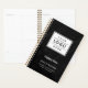 Add a professional look to your workspace with a custom company branded spiral business planner featuring a large space for your business logo with modern custom text that can be personalised with the name of the employee or business owner, business name, location, slogan, website, or other info. Makes a great corporate gift. Includes a faux black Carrera marble background that is printed on the front and back covers.