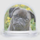 Custom black Pug dog photo and typography Snow Globe. Text, only on the front side, ready to be personalised. Ideal for everyone!