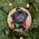 Custom Black Pug Dog Photo with Cute Elf Ceramic Tree Decoration