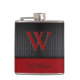 Custom Black Red Faux Leather Monogrammed Initial Hip Flask