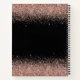 Personalised girly notebook featuring a black background that can be changed to any colour, a rose gold glitter waterfall overlay, your initial, and name.